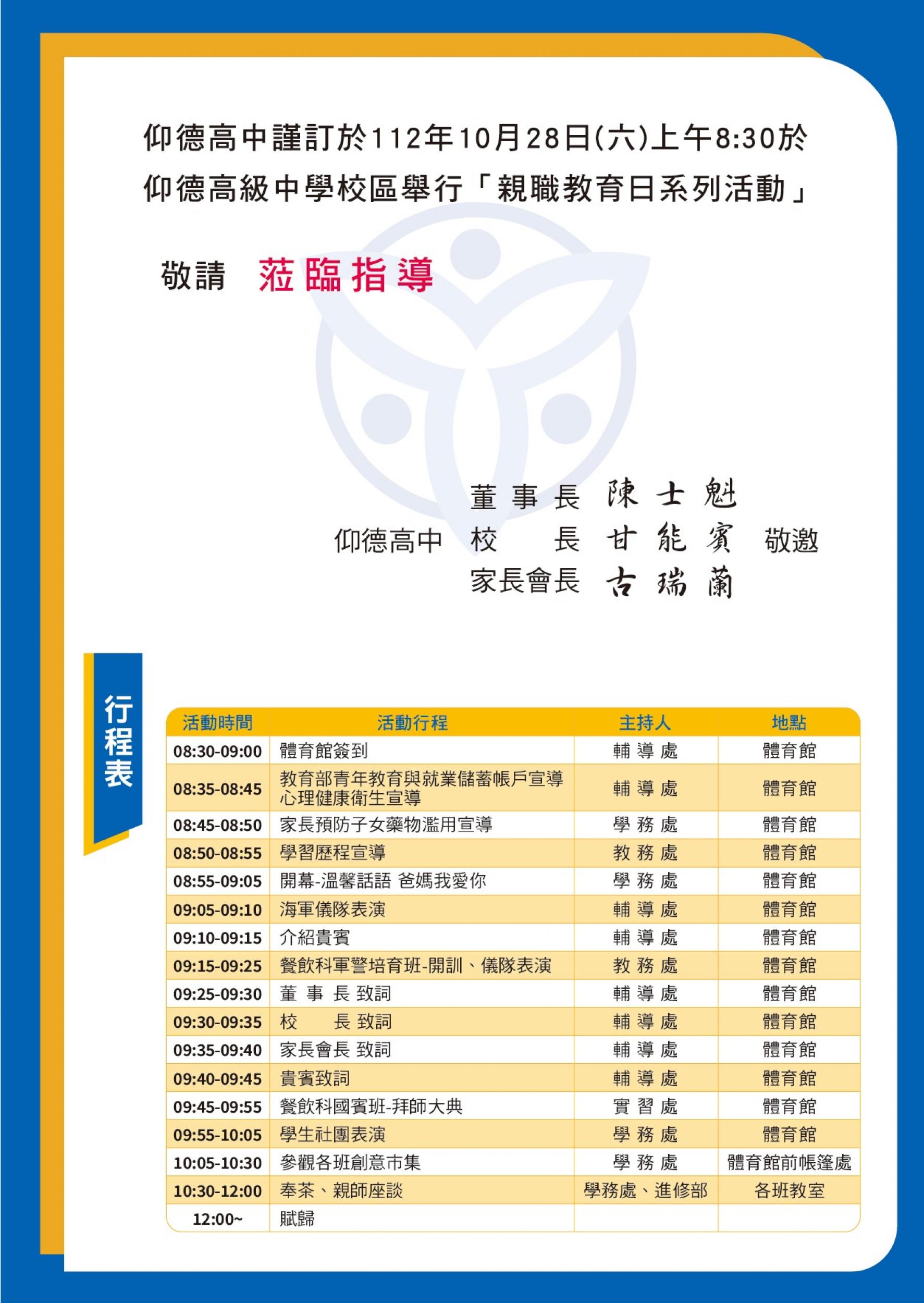 112學年度第1學期親職教育日於112年10月28日(六)上午舉行