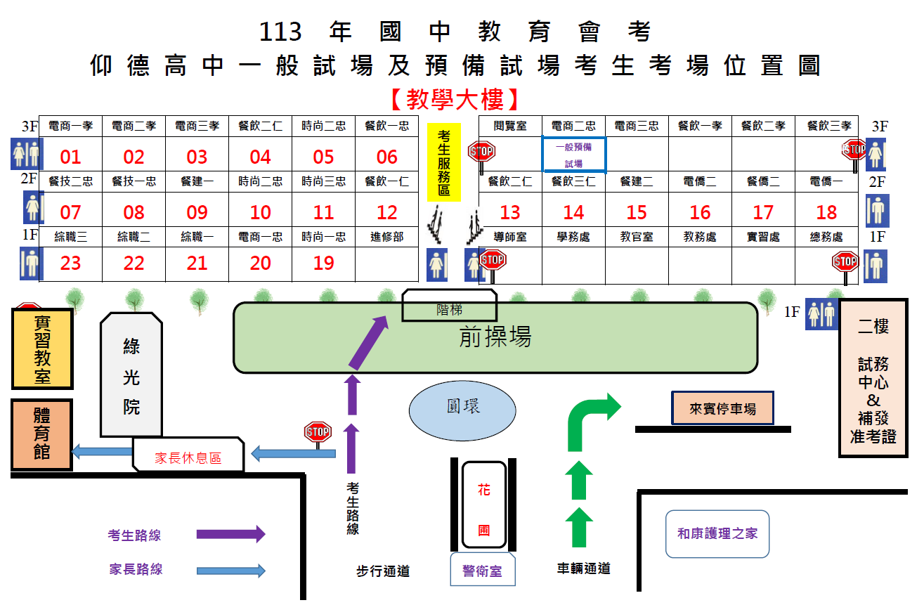 校園不開放家長停車,如家長接送考生,可於警衛室旁家長接送區暫停車輛。