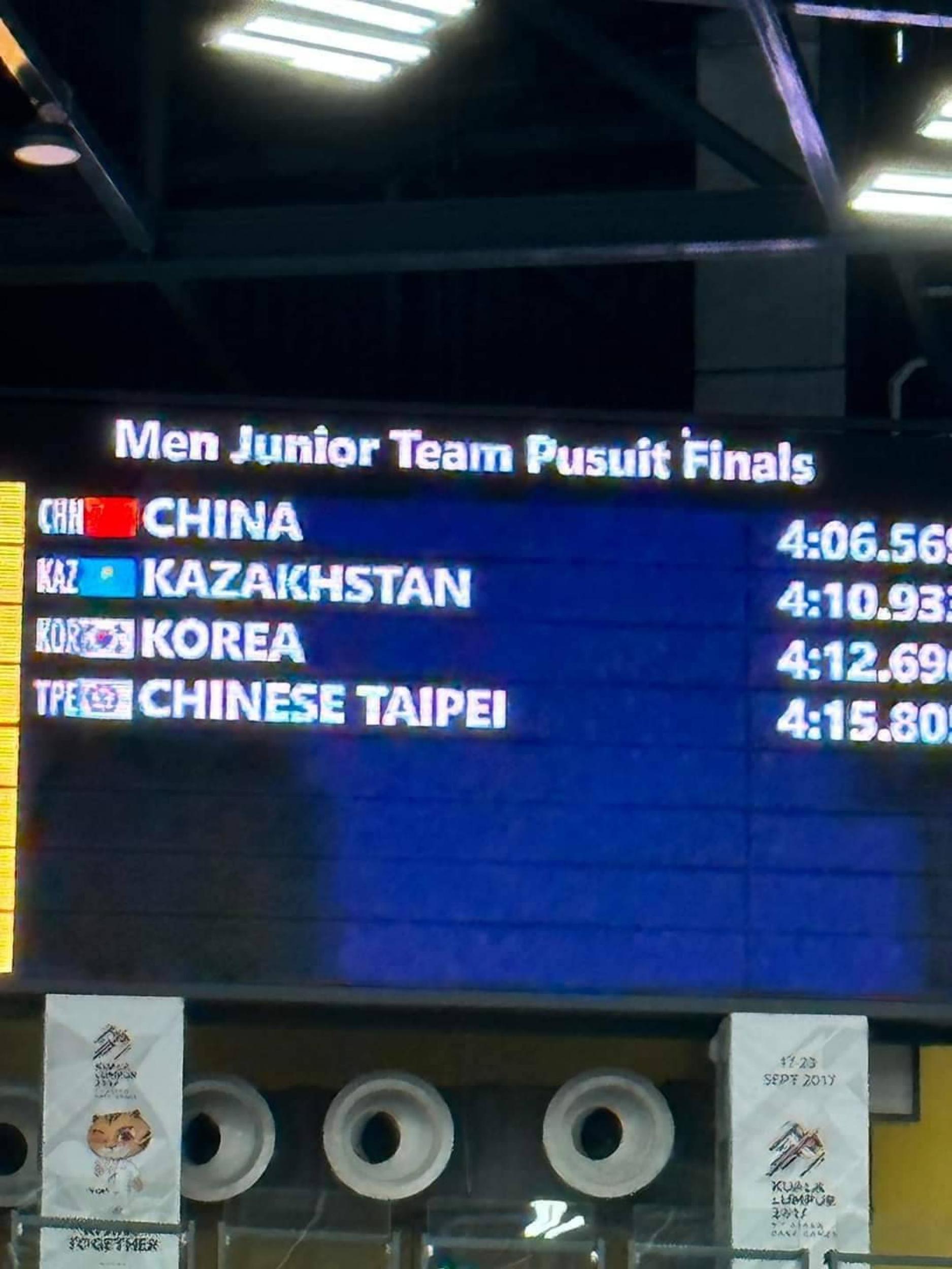 賀 本校自由車隊朱○學選手參加2023馬來西亞亞洲場地錦標賽青年男子組四公里團隊追逐賽榮獲第4名