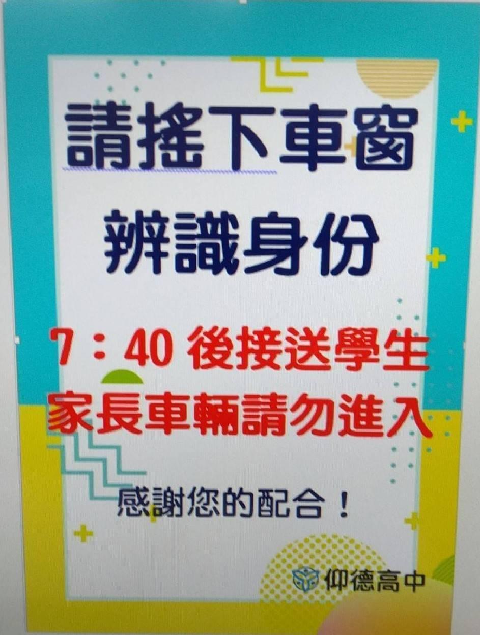學校自上午7時後學生陸續到校,各項晨間活動及環境整理於7時40分展開,為維護校內學生安全,7時40分後,接送學生的家長車輛請勿進入,造成不便,尚請見諒,謝謝您的配合。